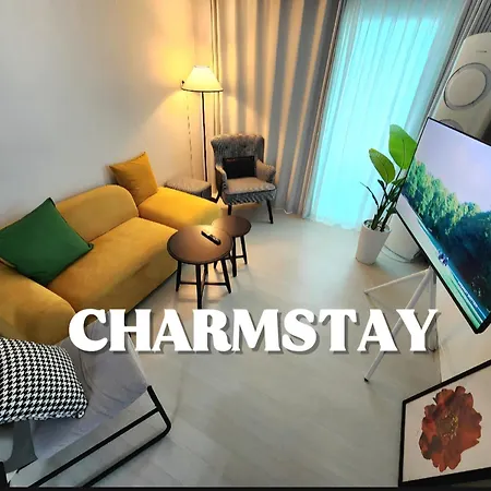 Charmstay In Seoul 합법숙소 공항철도 지하철역3분 3R2B apartment provides guests with a living room and a fully equipped kitchen, as well as such modern comforts as an air conditioner.
